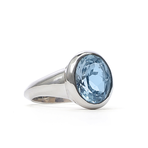 - La bague en argent et topaze bleue dévoile un design épuré au charme intemporel, qui met en valeur l'éclat de l'argent et la couleur inimitable de la topaze bleue.