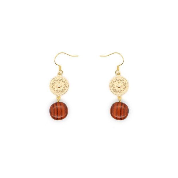 • Un assemblage réussi pour cette création d'une délicate perle ronde pendante en bois d'acajou ainsi que son filigrane dorée or en forme de spirale. Cédez à la tentation de cette ravissante création qui accessoirise vos tenues avec élégance et délicatesse.
