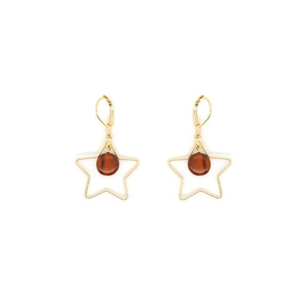 Boucles-d'oreilles en bois d'acajou avec étoile doré à l'or fin  En savoir plus