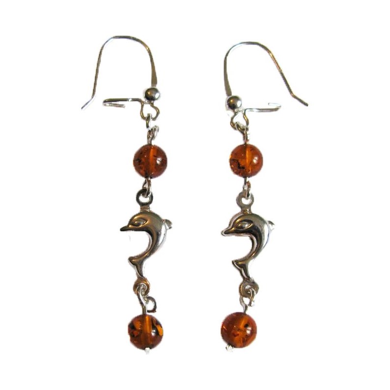 La forme originale de dauphin de cette apire de boucles d'oreilles nous rappelle les origines de la mer de l'ambre Baltique. Boucles d'oreilles dauphin argent 925/1000 Ambre de la mer Baltique cognac