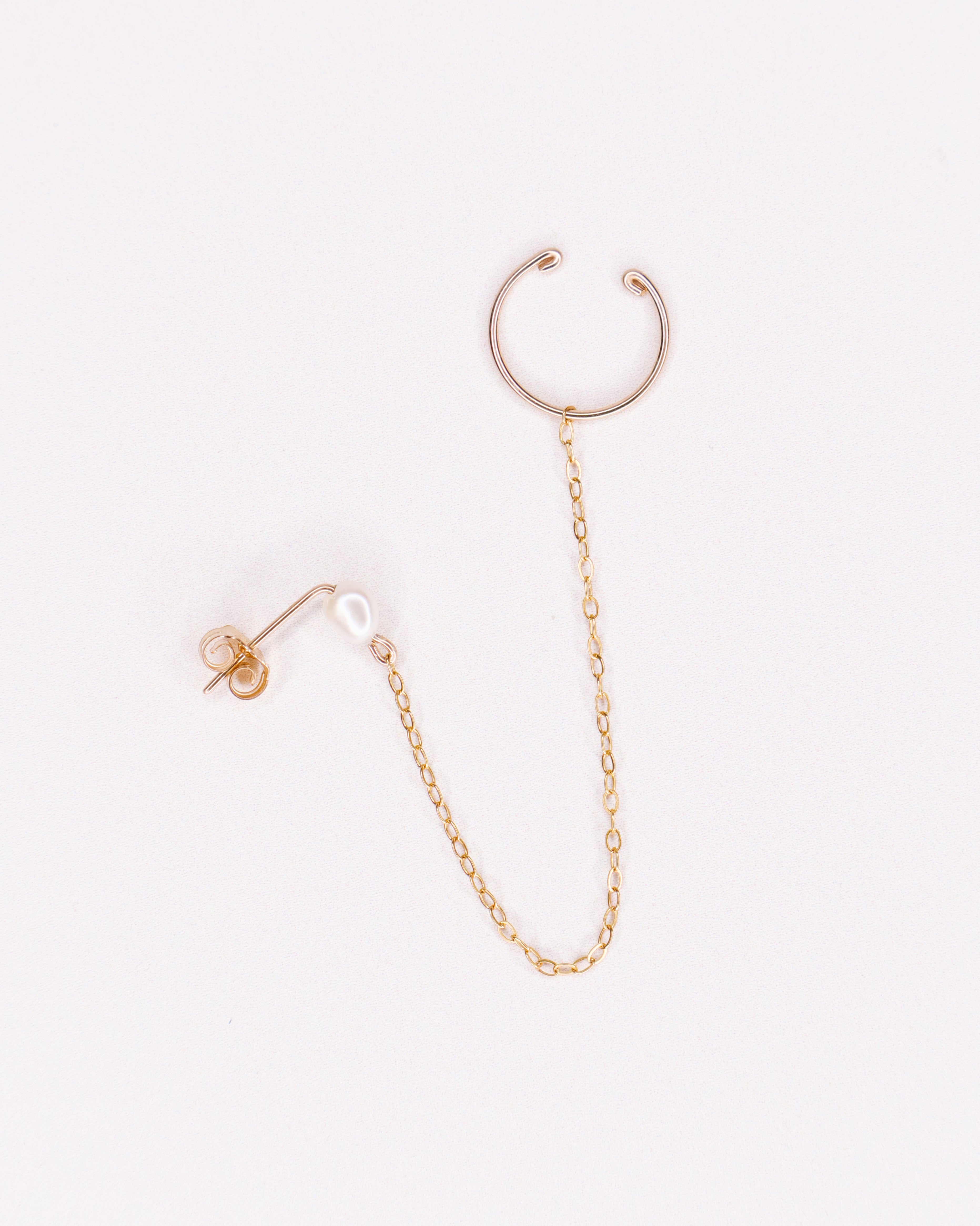 Ornée d'une perle de culture blanche, la chaine fait 7 centimètres de longueur.