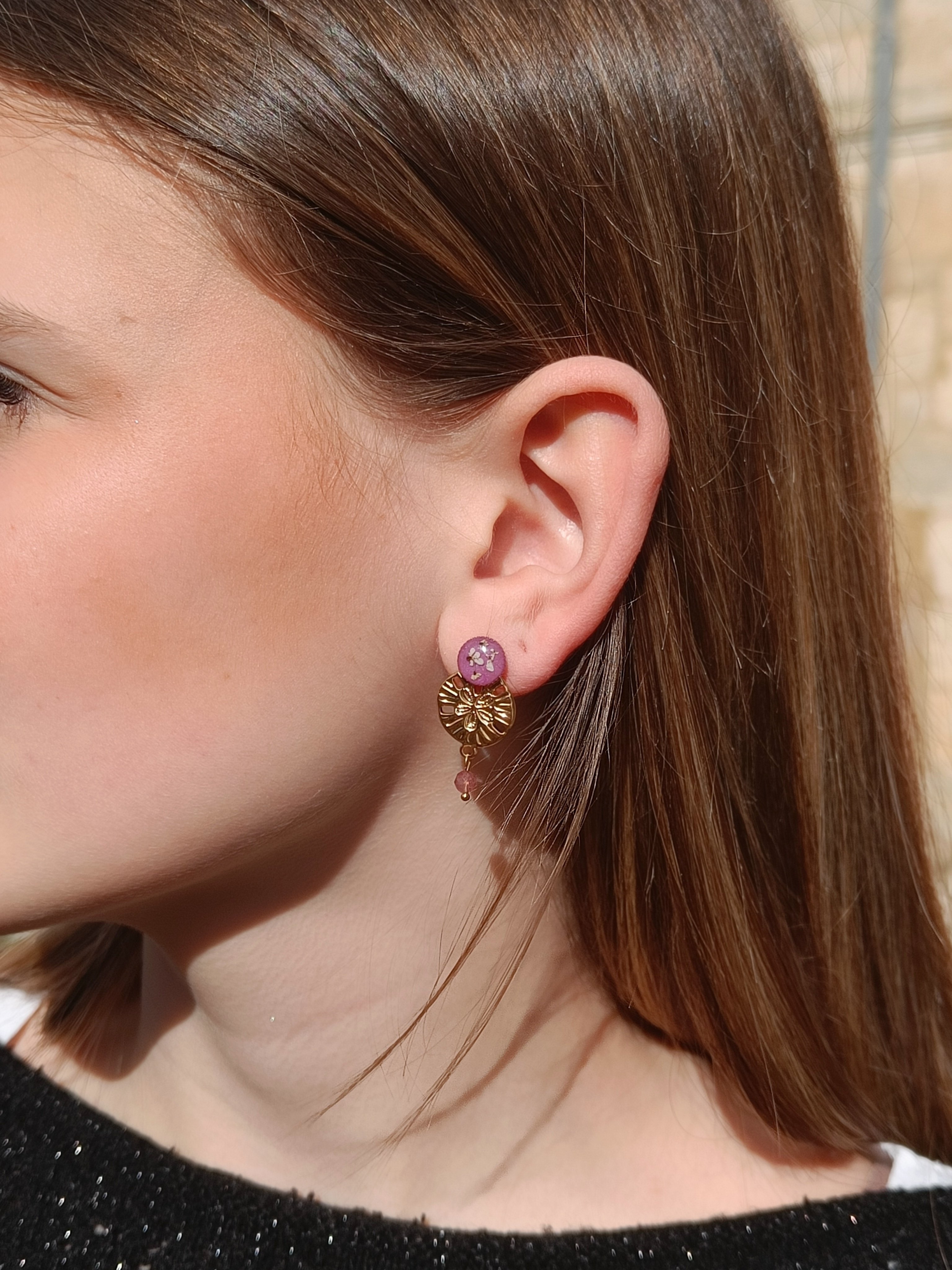 Boucles d’oreilles zélia amovibles en acier inoxydable et véritables fleurs
