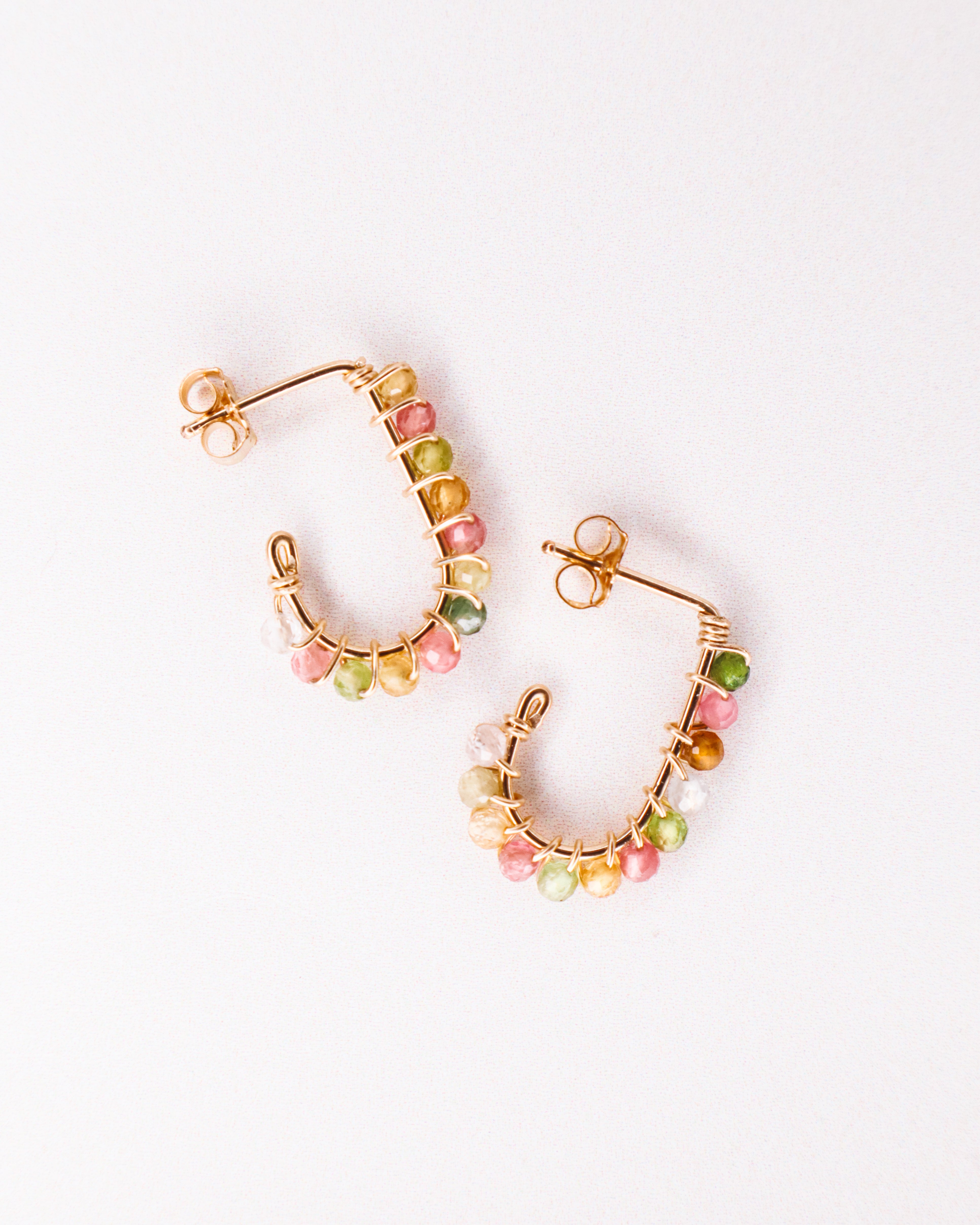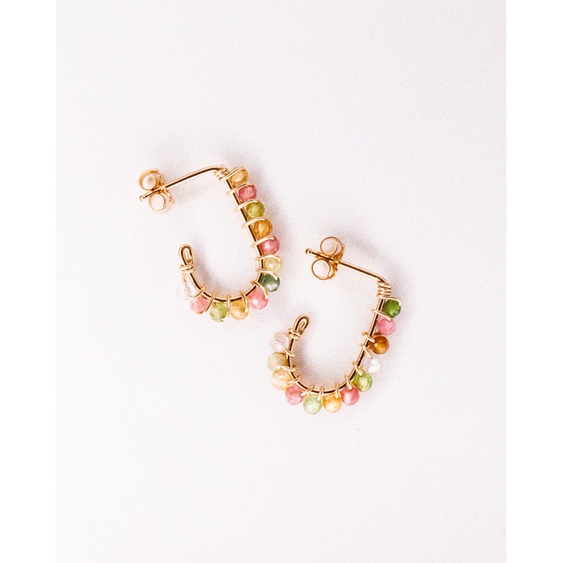 Les boucles d'oreilles font environ 1,7cm de longueur. Les pierres étant naturelles, les couleurs peuvent varier par rapport à la photographie.