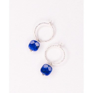 Ornées de pampilles de pierres naturelles de lapis lazuli bleu, les créoles font 1,3cm de diamètre.