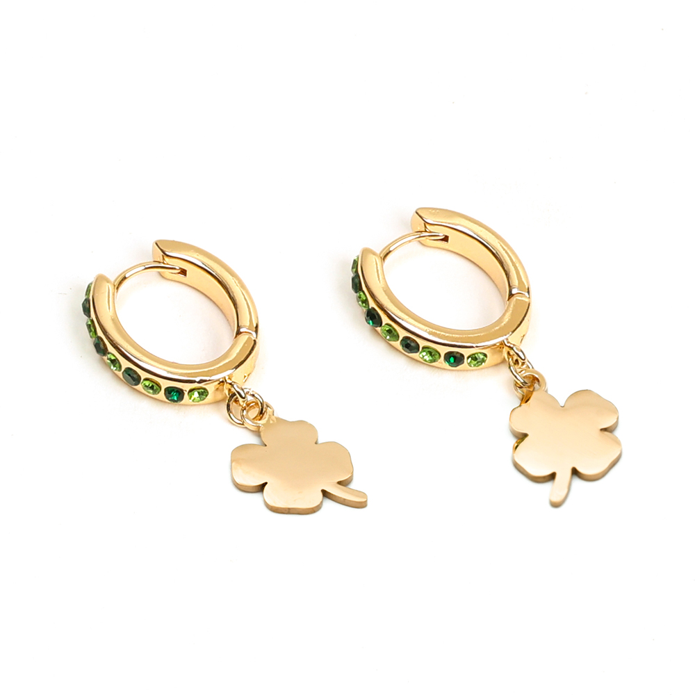 Boucles créoles en acier inoxydable doré motif trèfle et strass