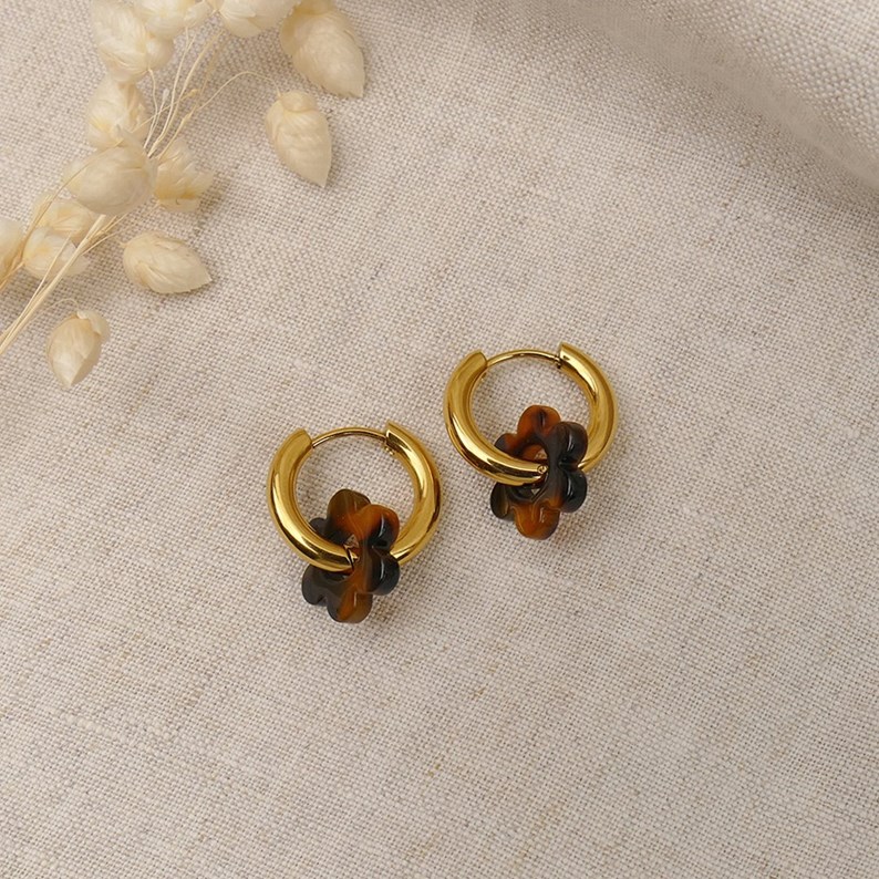 Boucles d'oreilles camélia - marron