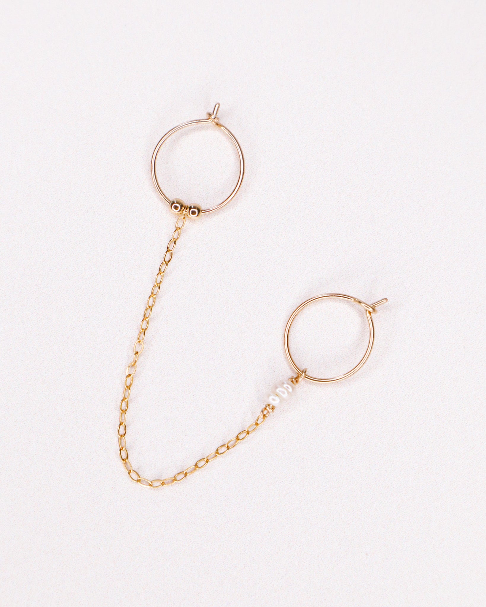 Ornées de perles de culture blanche, les créoles font 1,2cm de diamètre et la chaine fait 6 centimètres de longueur.