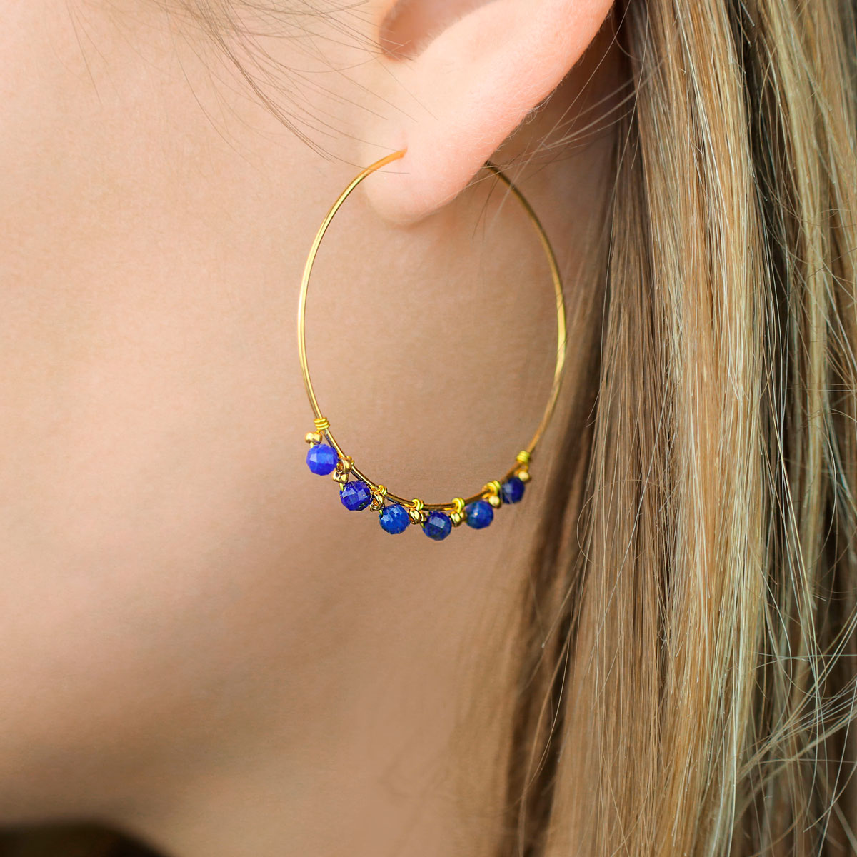 Créoles en acier inoxydable et lapis lazuli
