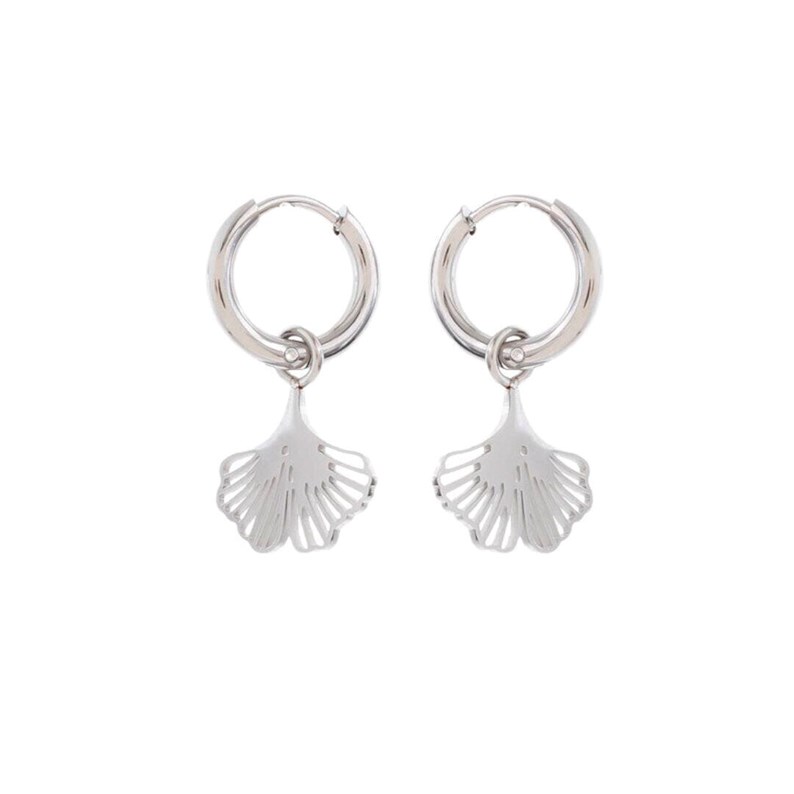 Créoles en Acier Inoxydable argenté avec un pendentif en feuille de ginkgo.  En savoir plus