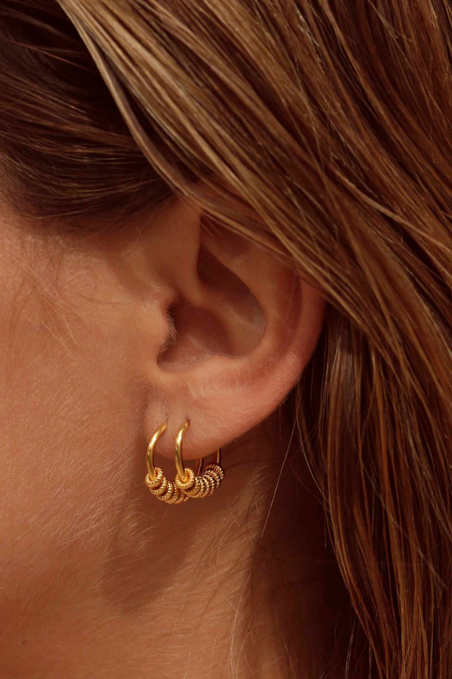 Les créoles NIL sont ornées de délicates perles dorées à l'Or fin 18K