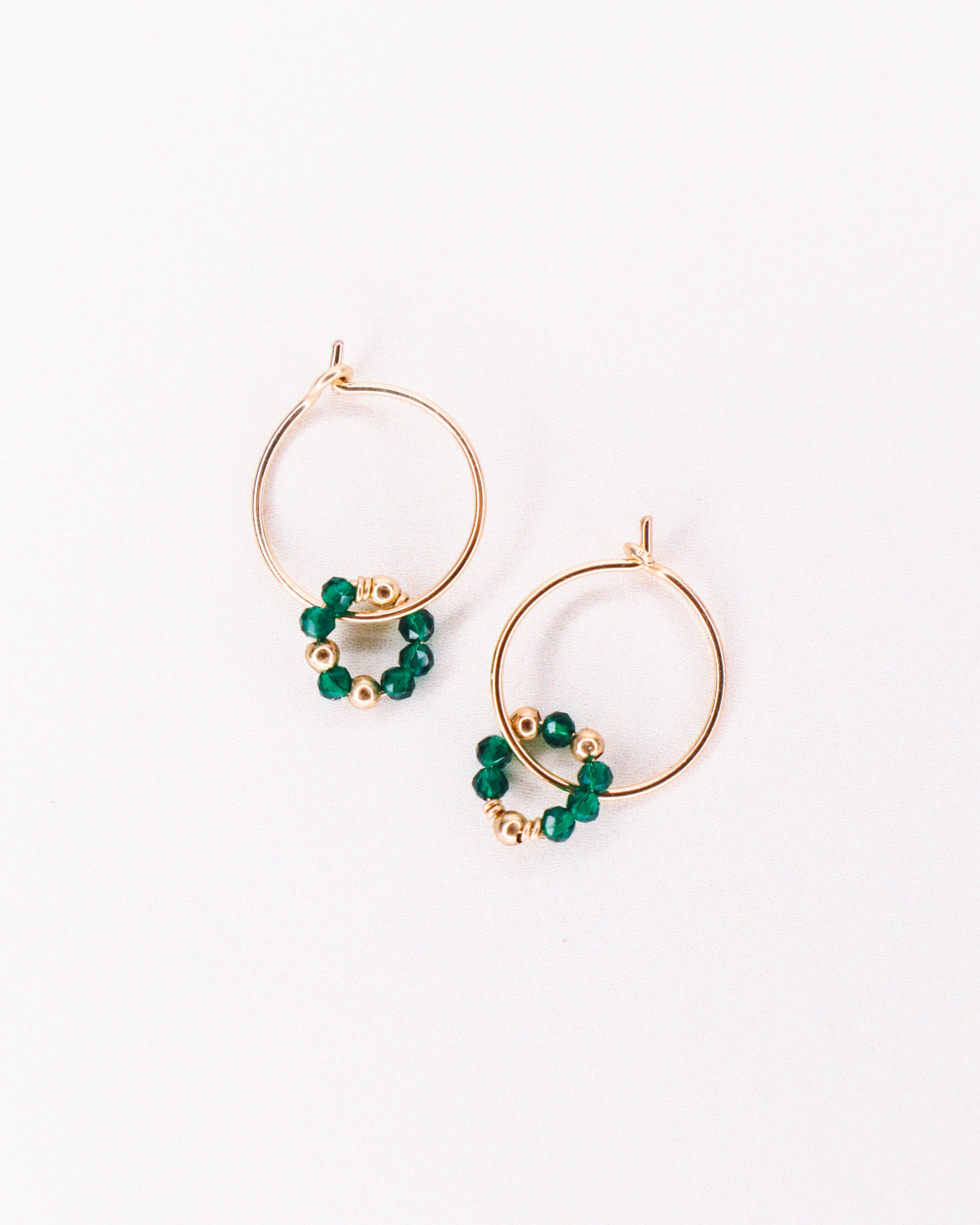 Les boucles d'oreilles font environ 1,5cm de diamètre. Les pierres étant naturelles, les couleurs peuvent varier par rapport à la photographie.