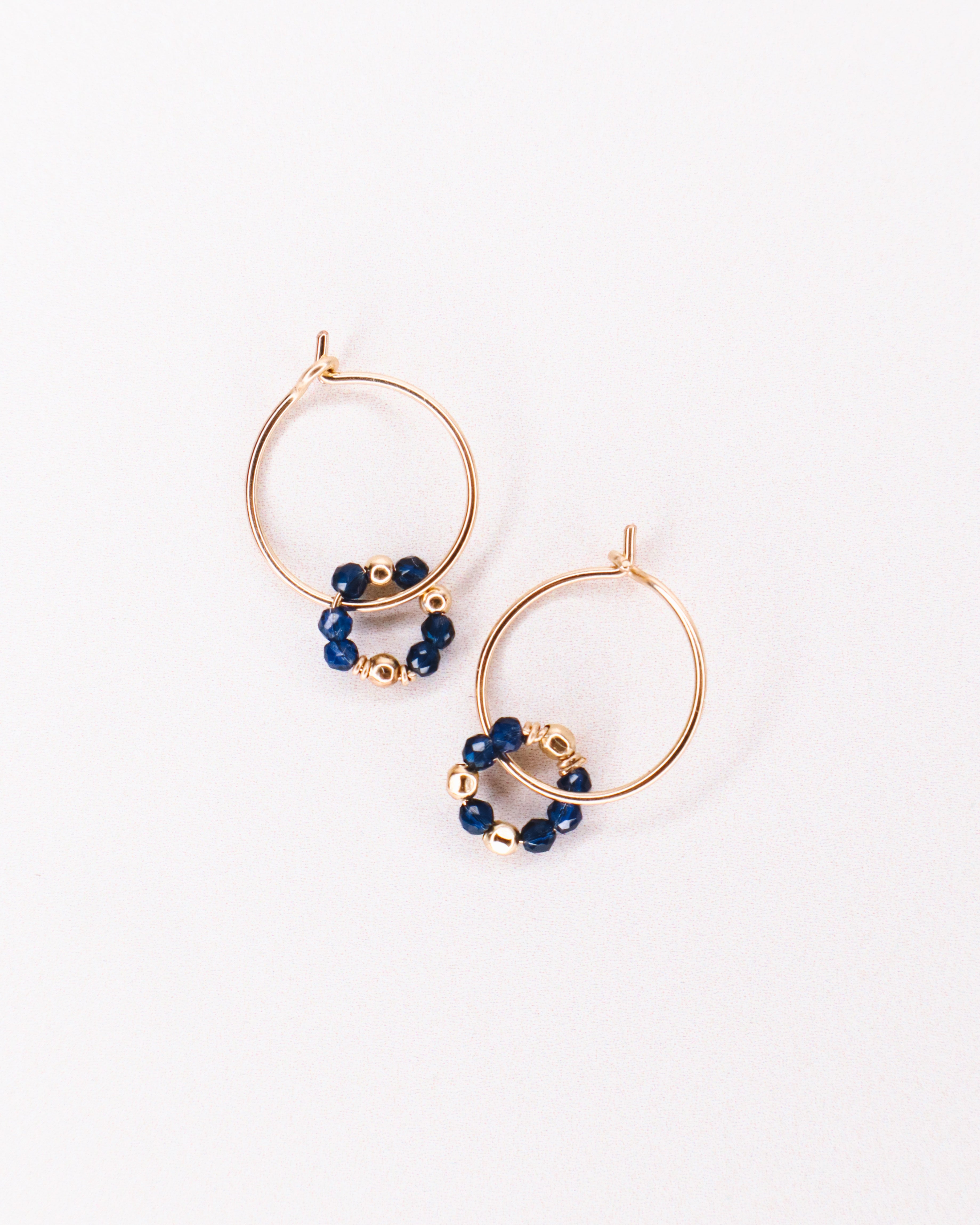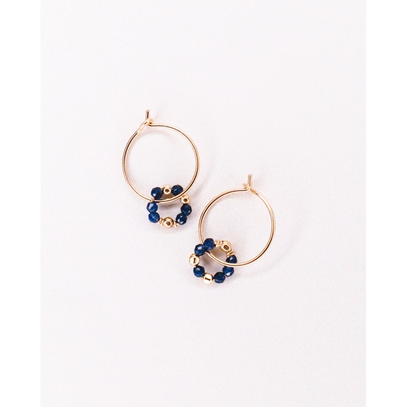 Les boucles d'oreilles font environ 1,5cm de diamètre. Les pierres étant naturelles, les couleurs peuvent varier par rapport à la photographie.