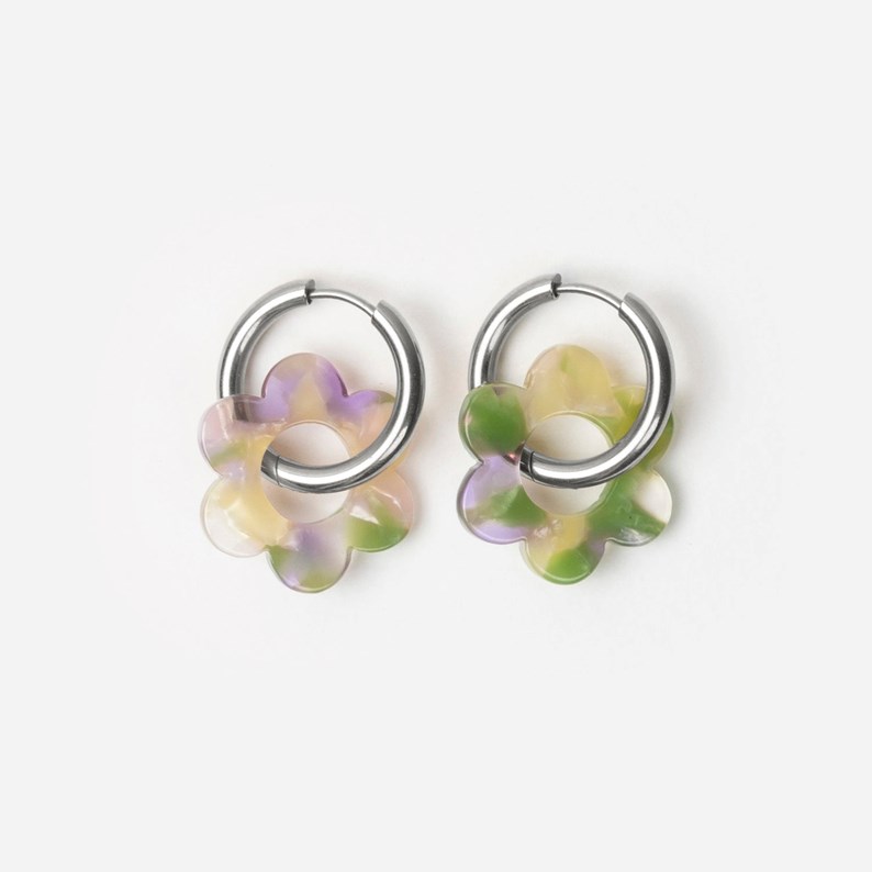 Baby fleurette - acier inoxydable argenté Vert et Lavande