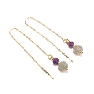 Boucles d'oreilles chaînes réglables en argent 925 doré à l'or fin 24 carats (2 microns) et pierres fines: labradorite et améthyste