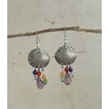 Boucles d'oreilles ethniques en argent massif patiné et martelé et pierres naturelles : améthyste, lapis, cristal de roche, aventurine, agate et cornaline.