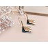 Découvrez ces boucles d'oreilles éventail vintage avec pendentif émaillé vert et son pendentif gouttes en acier doré, esprit rétro chic garanti