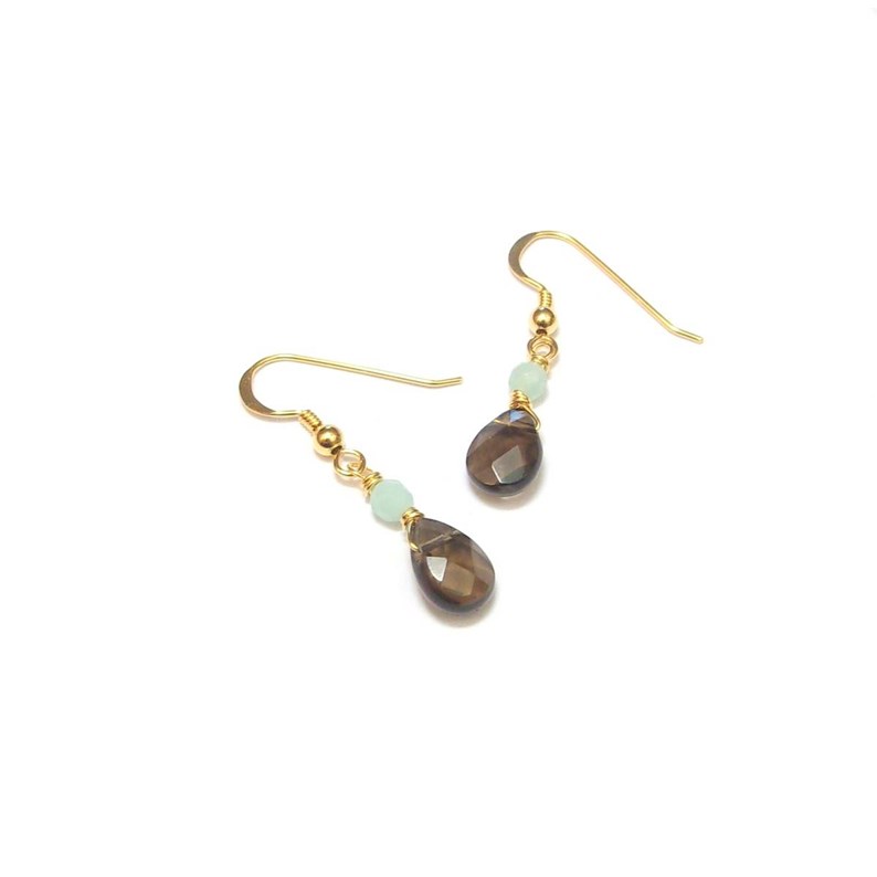Boucles d'oreilles simples et élégantes en argent doré à l'or fin et pierres fines: quartz fumé et amazonite.