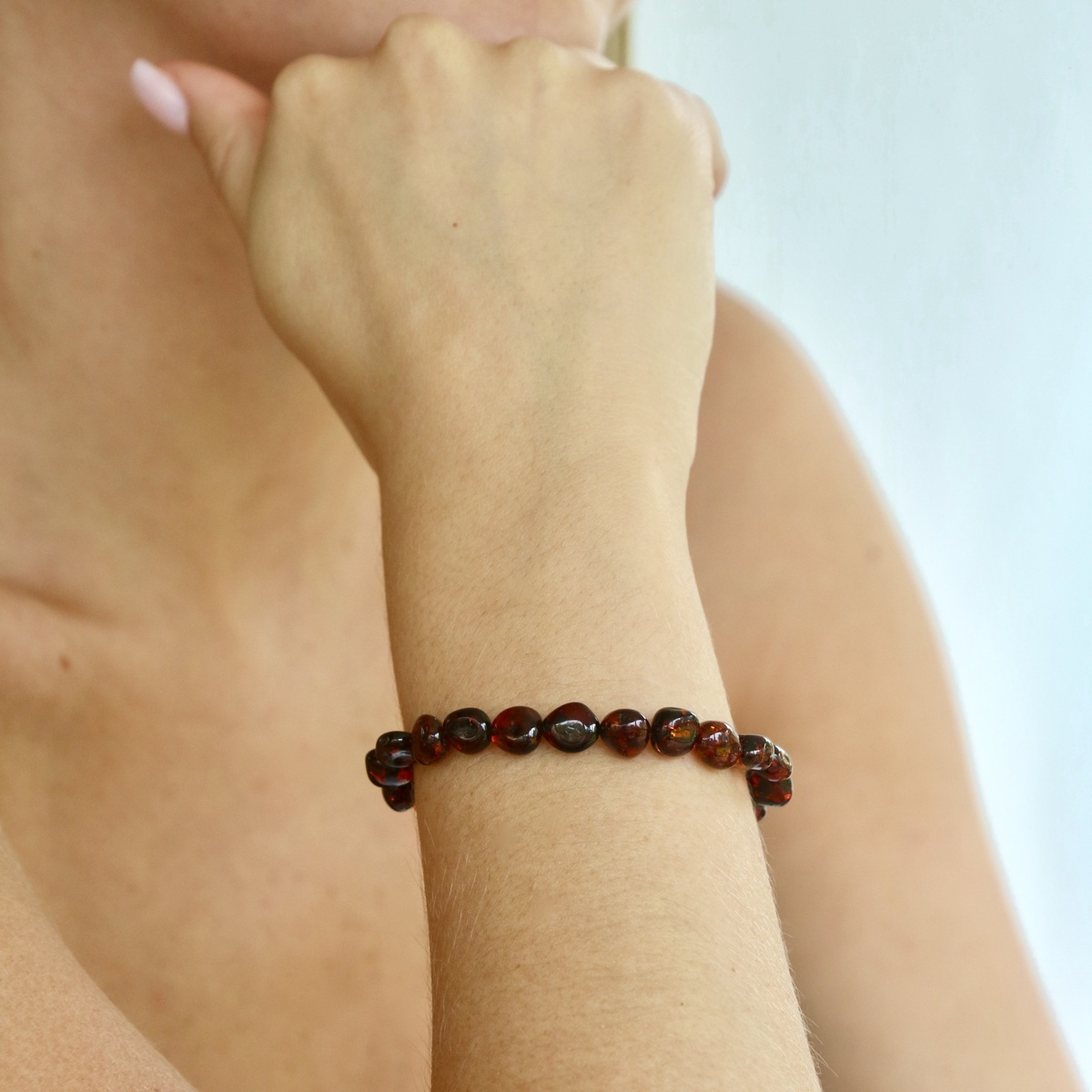 Porter ce bracelet en ambre cognac peut apporter une sensation de bien-être et de sérénité. Bien que les bienfaits de la lithothérapie ne soient pas scientifiquement prouvés, beaucoup apprécient l'énergie apaisante que l'ambre est censé dégager, en faisant un choix inspirant pour ceux qui recherchent une connexion avec la nature.