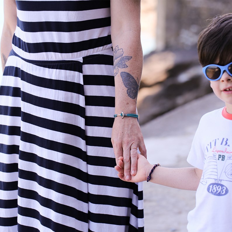 Bracelet réalisé artisanalement en Bretagne est réglable grâce à son nœud coulissant pour un tour de poignet allant de 15cm à 20cm