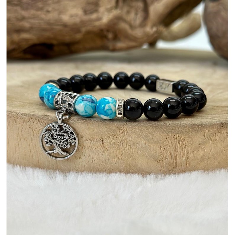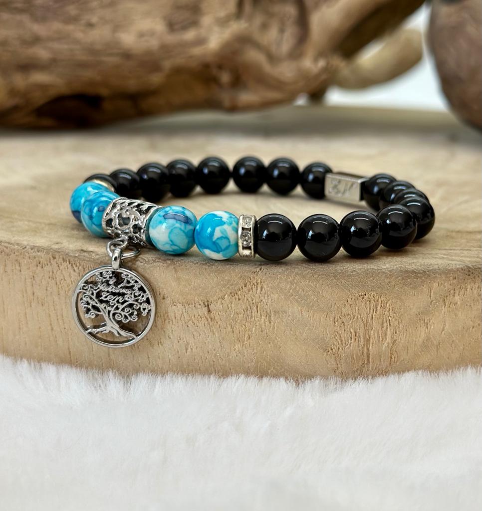 Portez ce bracelet en pierre d'obsidienne avec pendentif Arbre de Vie pour un style unique et une signification spirituelle.