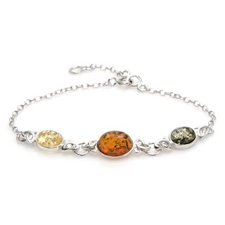 Bracelet Argent Rhodie 925/1000 Ambre Miel Cognac Verte  En savoir plus