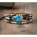 Fabriqué de façon artisanale avec des matériaux nobles, ce bracelet monté sur du cuir et sertie de pierres naturelles et de perles synthétiques vous apportera bien être et élégance.