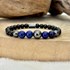 Ce Bijou offre une triple protection grâce à l'association de 3 pierres protectrices: l'Œil de Tigre, la pierre de lave et l'Obsidienne Noire.