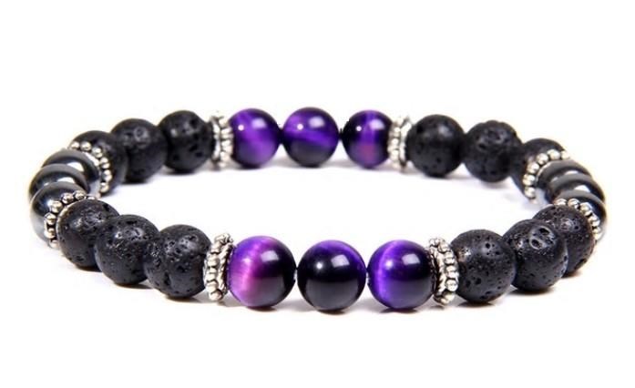 Bracelet défense en œil de tigre violet