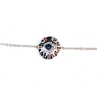 Inspiré des légendes et talismans grecs, notre bracelet de protection Oeil Bleu ""Evil Eye Sun"" est une version bohémienne et colorée de ce bijou porte-bonheur, porté depuis des siècles. Décoré d'un rayonnant soleil de cristaux colorés, votre oeil bleu bienveillant veillera sur vous ou vos proches à chaque moment de la journée. Les mauvais esprits n'ont qu'à bien se tenir!