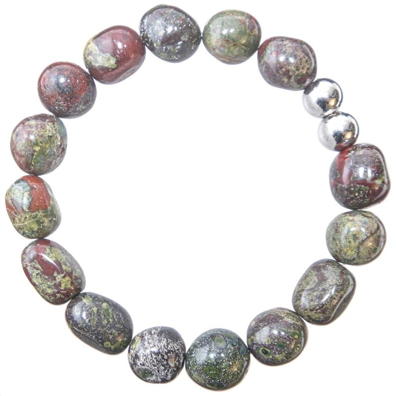 Bracelet de pierres naturelles en jaspe héliotrope. Composé de perles roulées de taille +/- 10 mm.