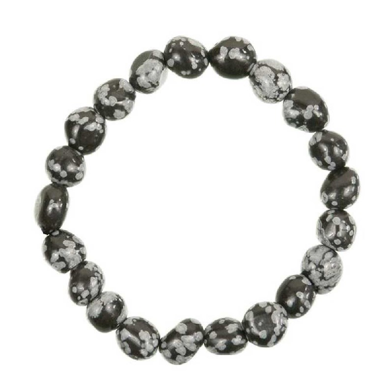 Bracelet de pierres naturelles en obsidienne neige. Composé de perles roulées de taille +/- 10 mm.