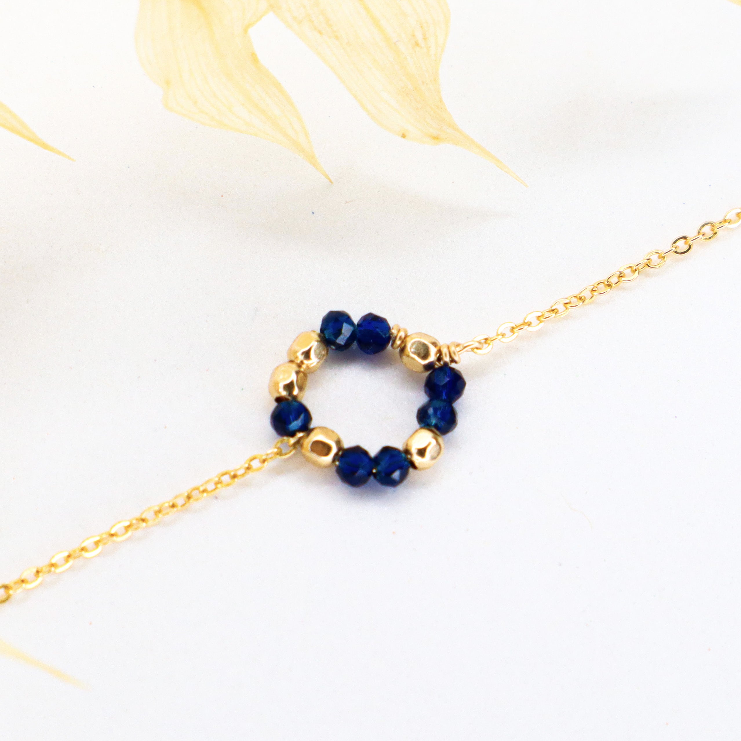 Ce bracelet en pierre de naissance est en goldfilled (alliage de laiton et d'or 14ct), ornée des pierres précieuses de saphir.