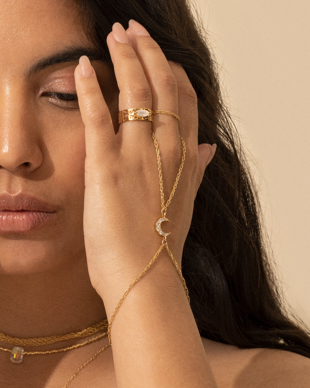 Fins mais résistants, nos bijoux de main complètent votre look de manière unique pour briller jusqu'au bout des doigts.