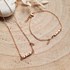 La parure Mini RÊVE Cube doré se compose d’un collier et d’un bracelet assortis, tous deux montés sur une chaîne fine en acier inoxydable doré, résistante à l’eau. Le motif central associe plusieurs petits cubes dorés pour un rendu graphique, subtil et lumineux. Chaque pièce est dotée d’une chaînette de réglage pour un ajustement parfait, et terminée par une petite feuille dorée, discrète signature de la marque.