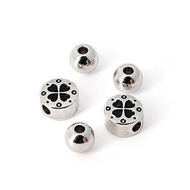 - Contient : 3 perles rondes lisses et 2 perles design au motif trèfle.