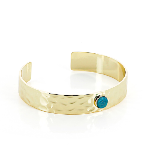 - Ce bracelet jonc allie à la perfection l'éclat doré du métal à la couleur bleu profond de l'apatite, une pierre naturelle.