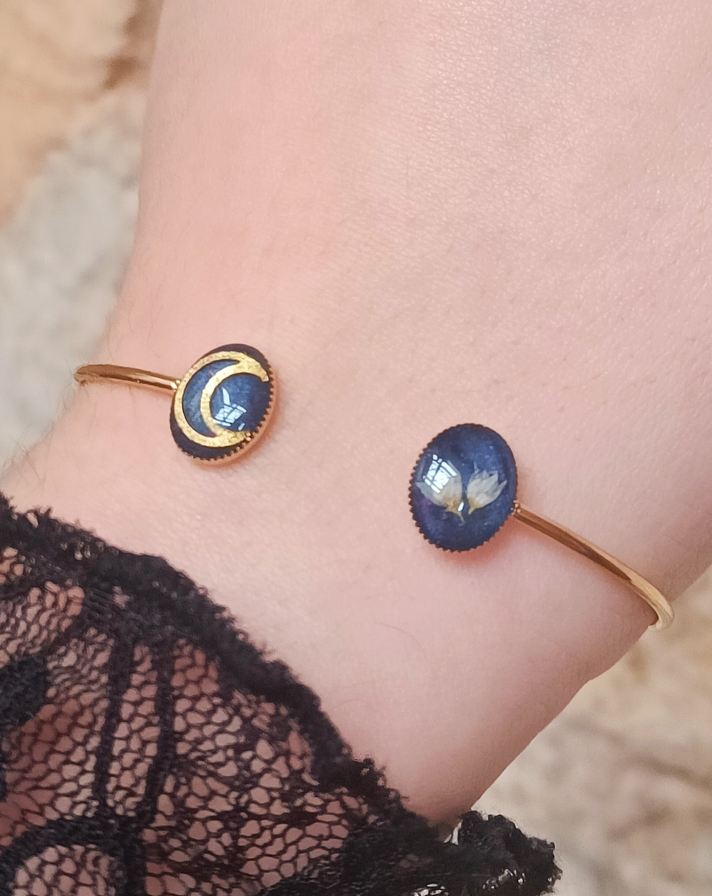 Bracelet nyvalis jonc acier inoxydable véritables fleurs travail artisanal