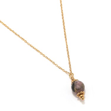 - Ce collier en rhodonite est fabriqué de façon artisanale en Chine. Il marie l'éclat chaleureux de l'acier inoxydable doré avec la couleur vibrante de la pierre.