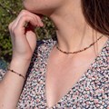 La pierre Tourmaline possède de nombreuses nuances de couleurs allant du noir au rose en passant par le jaune ou encore le vert. On trouve majoritairement cette pierre en Amérique et en Australie. Elle possède des caractéristiques vertueuses très puissantes, elle est principalement reconnue pour développer la confiance en soi. On dit aussi que c'est la pierre de l'amour, elle augmenterait les chances de trouver sa moitié. Ce joli collier associe la finesse et l'élégance aux vertus de la Tourmaline.