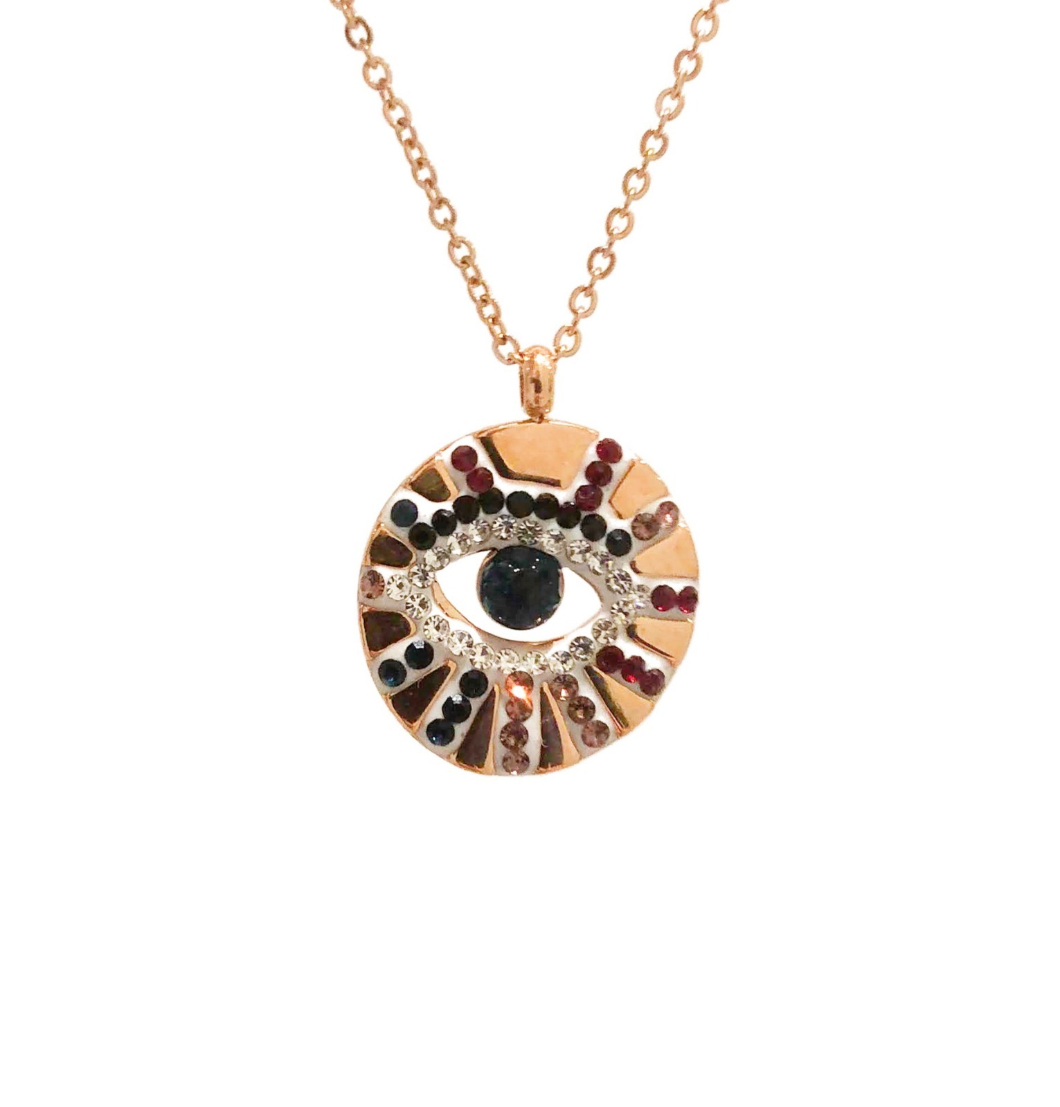 Inspiré des légendes et talismans grecs, notre collier de protection Oeil Bleu ""Evil Eye Sun"" est une version bohémienne et colorée de ce bijou porte-bonheur, porté depuis des siècles. Décoré d'un rayonnant soleil de cristaux colorés, votre oeil bleu bienveillant veillera sur vous ou vos proches à chaque moment de la journée. Les mauvais esprits n'ont qu'à bien se tenir!