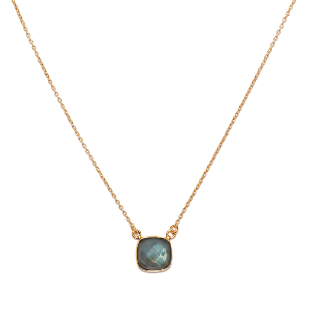 - La pierre de labradorite naturelle est montée sur une chaine en laiton doré (0,5 microns).
