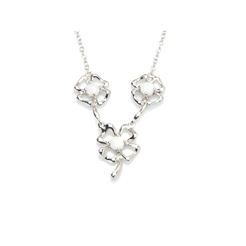 Ce magnifique collier vous apporte de la chance ! Avec sa forme de trèfle à quatre feuilles et ses trois pierres d’opales, laissez- vous charmer par ce sublime bijou. Collier argent rhodie 925/1000 Opale d'Australie 0,62/3 pcs