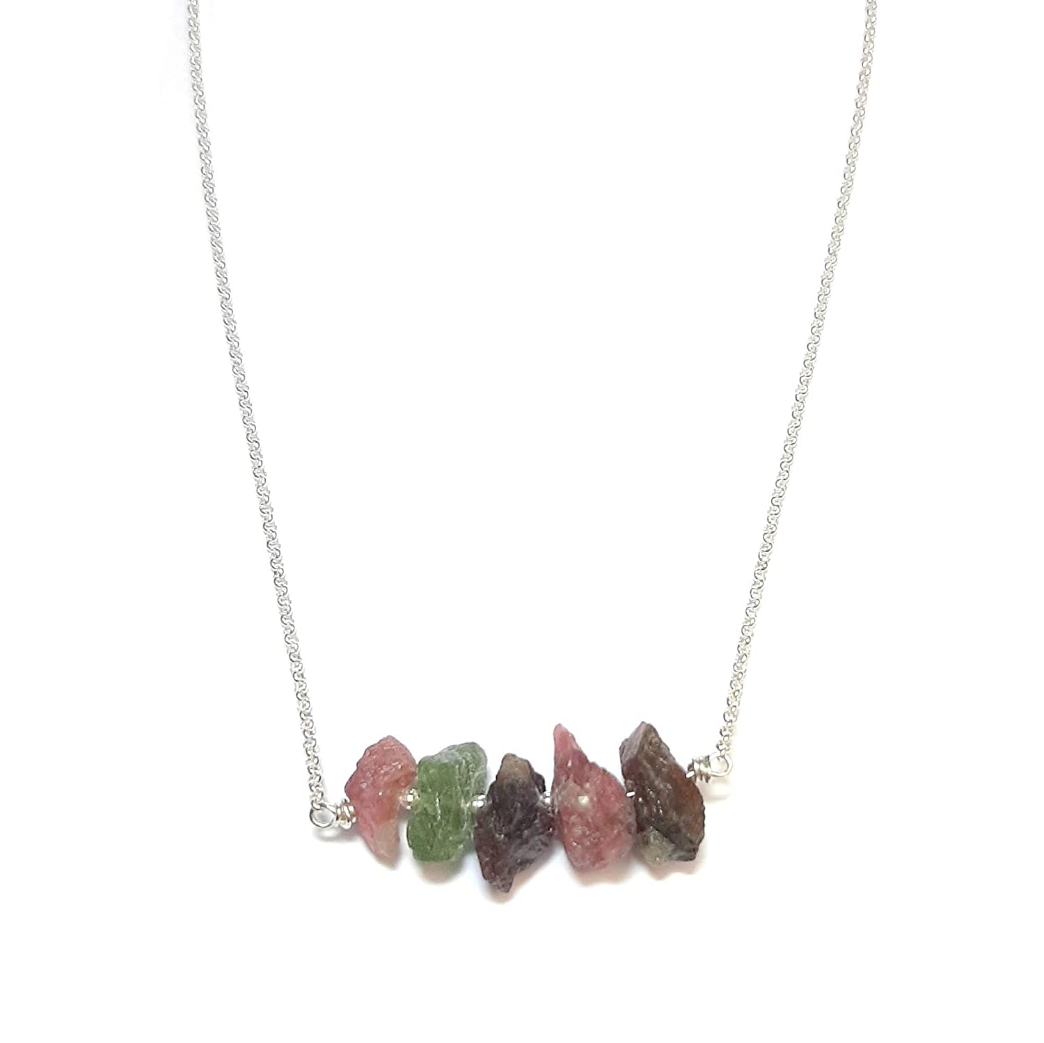 Collier chaîne ras-du-cou en argent 925 et pierres semi-précieuses brutes: tourmaline.