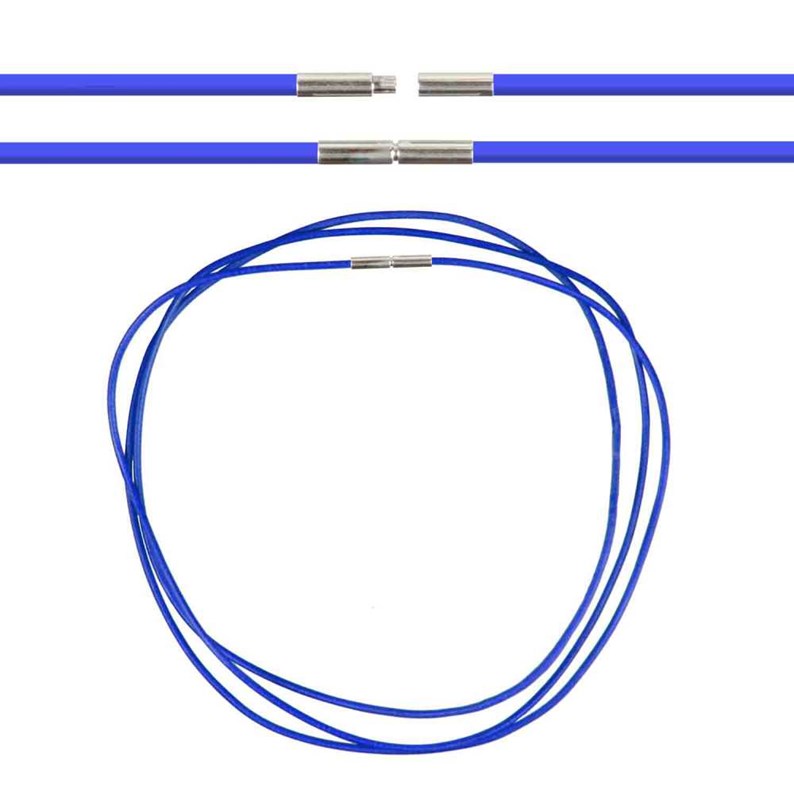 Cordon cuir de chevreau fermoir baïonnette - 46 cm - Bleu marine