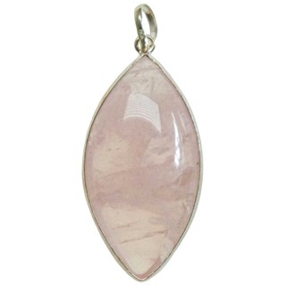 Pendentif ovale pointu, en quartz rose, monture en argent 925.