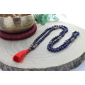 DescriptionA porter comme bijou ou à utiliser pour réciter les mantras lors des séances de méditation, ce mala saura trouver sa place dans le quotidien de chacun. Il est confectionné dans le plus grand respect de la tradition tibétaine. Les 108 perles et le pompon qui le composent sont soigneusement montés et noués à la main. Le lapis lazuli pousse au dépassement. Sélectionné pour ses vertus protectrices, il aide à aller au delà des idées reçues et des conflits. Il favorise l'ouverture d'esprit nécessaire au dénouement. Associées à cela, les perles de rudraksha, ou ""perles du miracle"", viennent renforcer les bienfaits des pierres et apaiser l'esprit.