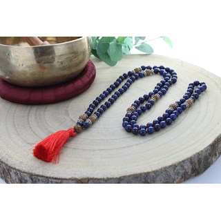Mala en lapis lazuli et rudraksha aux 108 perles Omsaé