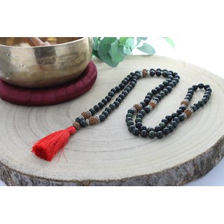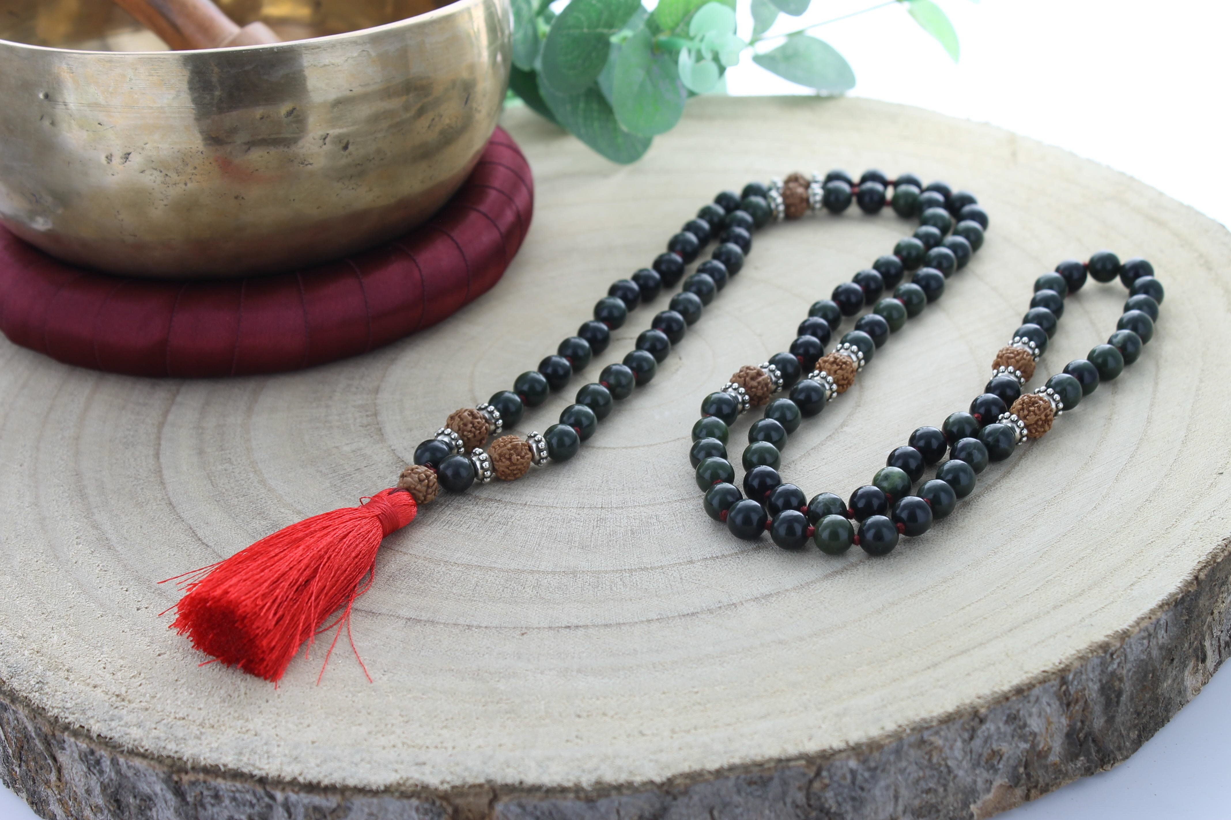 Mala en serpentine et rudraksha aux 108 perles Omsaé