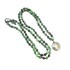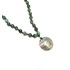 Sautoir ethnique en zoïsite avec un pendentif en argent massif martelé. Les pierres sont montées sur fil ciré avec un nœud entre chaque perle.