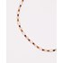 Enfilage de perles de culture et de pierres de jaspe mokaïte marron, rouge et jaune. Le collier ras de cou fait 37cm de longueur avec une chaine de réglage de 5cm.
